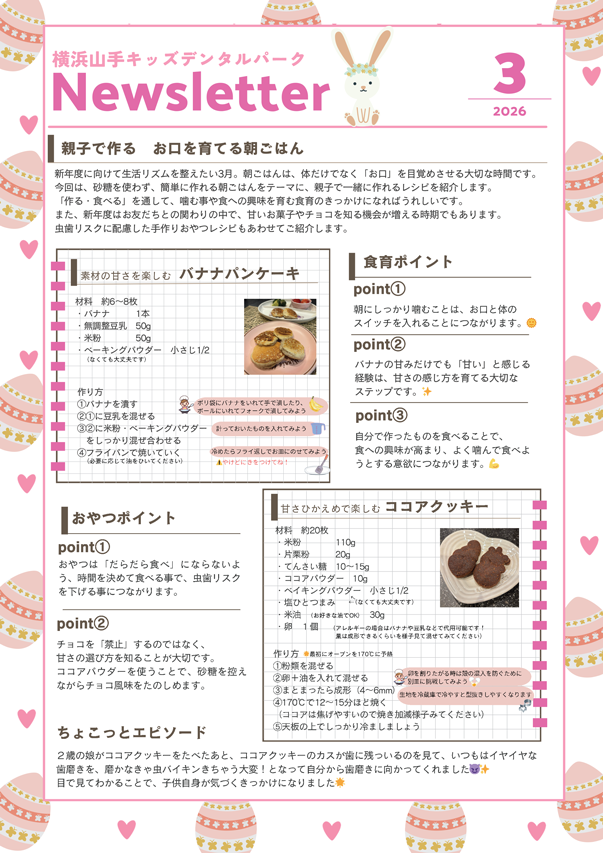 院内ニュースには、砂糖を使わず、簡単に作れる朝ごはんをテーマに、親子で一緒に作れるレシピをご紹介しておりますので是非待合室でお読み下さい!